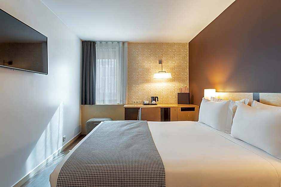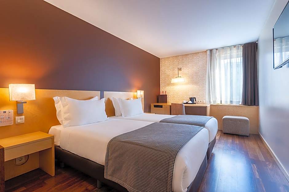 Located between the 1st and 12th floor, this twin room offers a white modern décor, flat-screen TV and mini-bar. The private bathroom is fitted with with a hairdryer.
